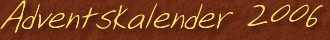 haben. Weil ... unserer schnellen Zeit ein bißchen Wärme fehlt. Ist noch so weit hin ?? Hmm ... in zwei Wochen öffnen wir schon das dritte Türchen. So schnell vergeht die Zeit. Wie wird der Adventskalender 2006 ? Schön, besinnlich, abwechslungsreich ... auch dank der Seelenfärbler-Geschichten :). Und es wird eine Adventsfoto-Aktion geben :)) Fotografiert mir bitte Eure schönste Sagichdemdersichmeldet. Ihr könnt mir aber nicht nur Bilder schicken, sondern alles andere, was in einen Adventskalender passt: kleine Anekdoten, Erinnerungen, Rituale, Freude, Lachen, Pleiten, Pech, Pannen, Wärme, Rezepte, Bilder, Poesie. Ihr könnt die Mutter/Oma fotografieren und nach Weihnachten fragen oder Papa/Opa oder beide ... undundund ... es gibt so viele interessante Dinge zu Advent und Weihnachten. Einfach mal mailen und kurz andeuten, welchen Beitrag Ihr denn für den Adventskalender hättet. Ich freue mich auf Eure Mails :)). (Bitte Verständnis haben, dass ich evtl. nicht alle Zuschriften veröffentlichen kann, weil der Adventskalender leider nur 24 Türchen hat). |