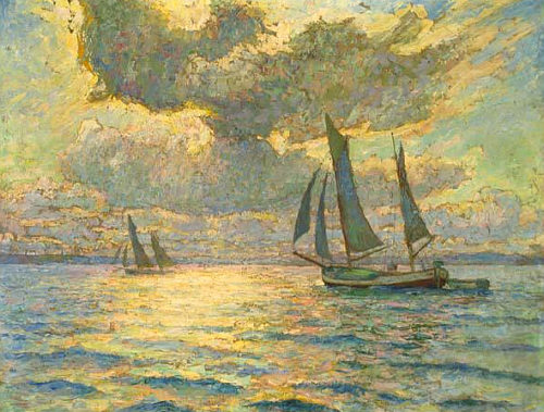 Emil Artur Longen (1885-1936) "Schiffe vor der kroatischen Küste Pula"