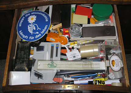 es in den meisten Schreibtischschubladen ... nämlich unaufgeräumt.