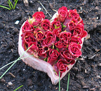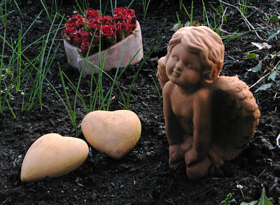 Wir schauen nach unten auf die Grabbepflanzung ...