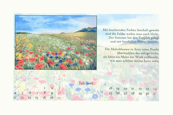 Zu den Kalenderblättern will ich nur als Überblick