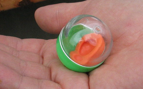 Dann bleibt nur noch die Mitte ... die Kapsel mit Spielzeug.