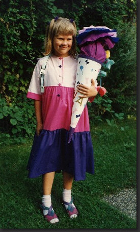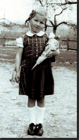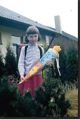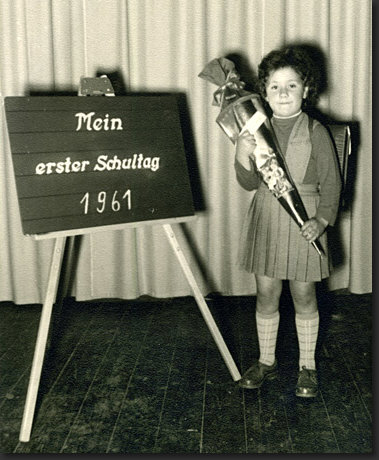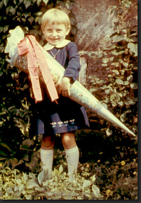 Die Schultüte war geborgt, weil sie keine eigene hatte.