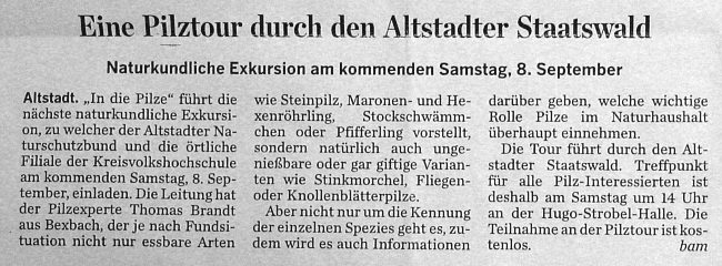 Dochdoch, das ist Russisch Roulette. Pilztour ist nur der Deckname. Und so standen so einige, die das Spiel lieben, in Altstadt (pfalzgrenznahes Saarland). Einen Rädelsführer gabs auch.