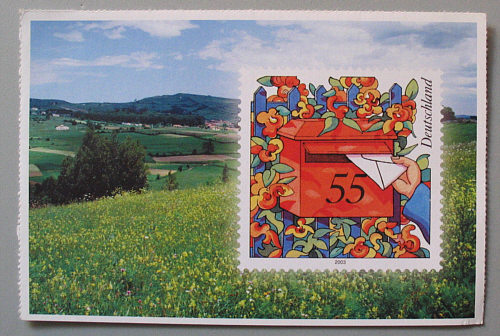 indem man eine Postkarte mit der Briefmarke "vornedrauf" verschickt.