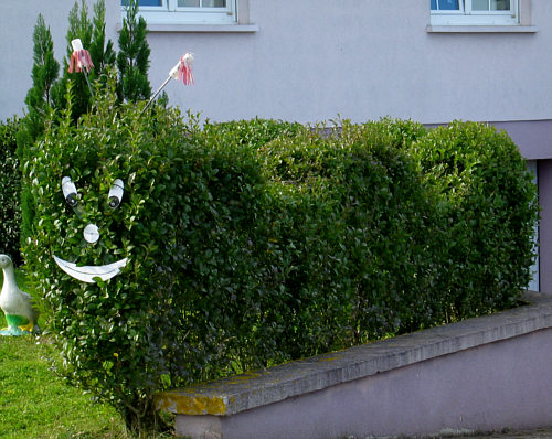 Rund um die Terasse ist die Hecke zur Burg geschnitten ... genial.