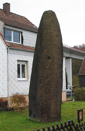 Das ist ein Menhir. Ein großes, aus einem einzigen Stein gefertigtes