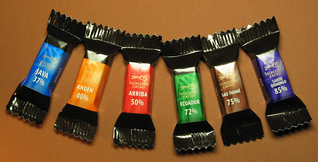 Bedient Euch ... welches Täfelchen hättet Ihr gerne ? Oder gleich alle Sechs ? Oder die Drei mit den wenigen Prozenten ? Oder die Drei mit den vielen Prozenten ?