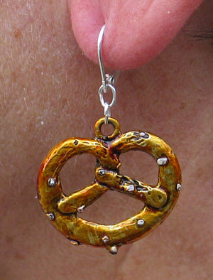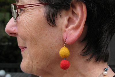 Uschis originelle Ohrringe, die an Ilses Ohren hängen