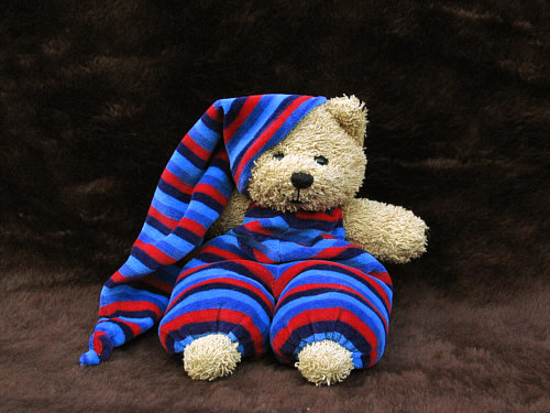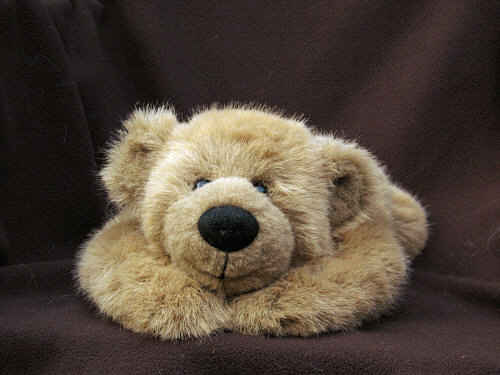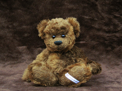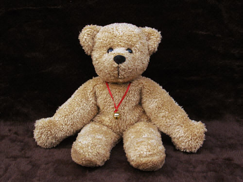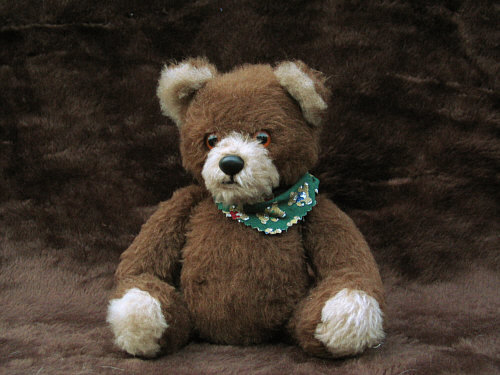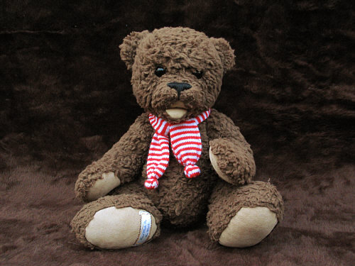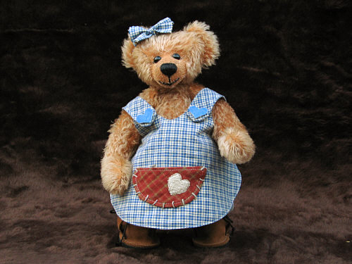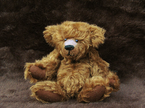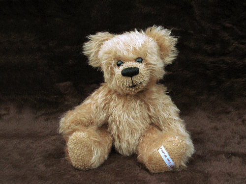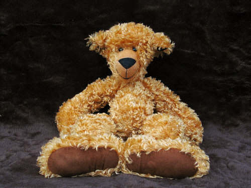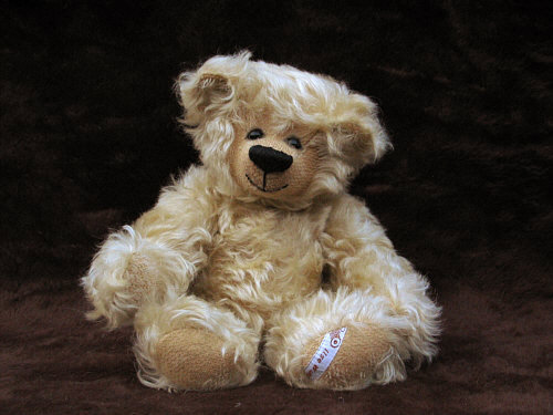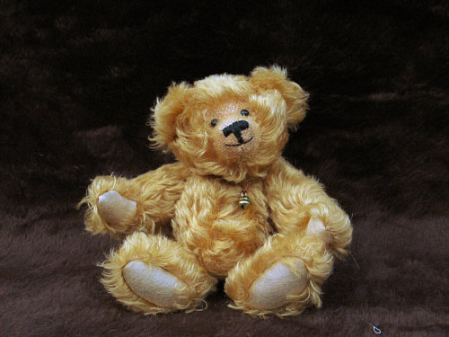 Mein allererster selbstgenähter Teddy, inzwischen 14 Jahre alt.