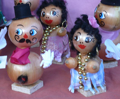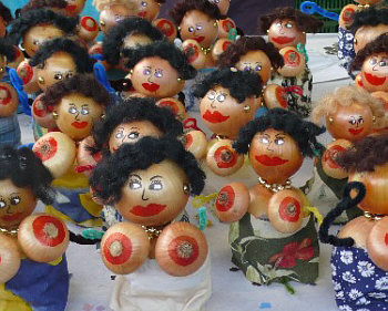 Erst gibt die Zwiebelfrau dem Mann einen Korb und dann legen sie sich