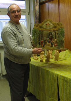 Dieser sympathische ältere Herr sammelt nicht nur die Krippen,