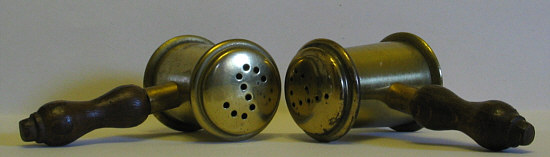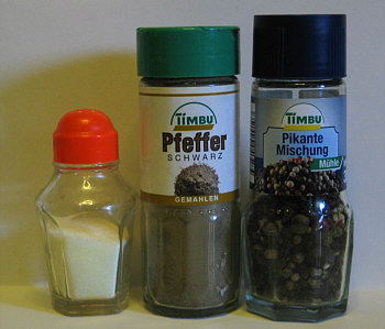Die Salz- und Pfefferstreuer der Seelenfärbler. Ist ja der Wahnsinn ... über 60 haben mitgemacht und mir ihre Salzstreuer etc. geschickt. Per Mail natürlich, nicht als Päckchen *gg*. Aber ich fange mal mit mir an ... ich kann ja nicht nur "schickt mir" rufen und selbst nicht salzen und pfeffern. Der Pfeffer ... da haben wir zwei Möglichkeiten. ![]() Das ganz normale Glas, wie es im Geschäft stand und nun bei uns zu finden ist. Diesen Pfeffer benutze ich nicht, aber Beate. ![]() Die ganz normale Mühle, wie sie im Geschäft stand und nun ... ich wiederhole mich ;)). Wird von uns beiden benutzt. Aber das Salz ... das wird gestreut: ![]() Ein alter, aber zeitloser Salzstreuer, den ich sehr mag, weil er kleine Löcher hat und sehr gut zu dosieren ist. Der ganz normale Alltag eben. Den Gedanken an eine Salz- und Pfefferstreuerkollektion hatte ich ja schon länger, so mancher erinnert sich vielleicht an einen entsprechende Umfrage (vor einigen Monaten) im Lichtblick. Immer mal wieder dachte ich dran ... dann vergaß ichs wieder. Doch eines Tages fand ich das da ... ![]() ... beim Aufräumen. Nein, das sind keine Teekocher oder Gerichtshämmer. Das sind wirklich ... ![]() ... Salz- und Pfefferstreuer. Mit Stiel. Auch mit Stil ? Darüber kann man streiten ;)). Aber es gab ja mal eine Zeit, da war Messing angesagt. Zu den Beiden gehört noch etwas dazu: ![]() Richtig stehen sie, wenn sie erhöht stehen. So ein bißchen altenglisch-erwürdig ;)). ![]() Das waren jetzt meine Streuer ... und beim nächsten Mal kommen Eure dran. Ich hätte ja an alles gedacht, nur nicht an diese Menge und Vielfalt. Ja, wir haben sogar einen Sammler von solchen Dingen dabei. Vorfreut Euch auf viele kleine Löcher mit Streuern drumherum :)). -- Vorfreut Euch auch ... auf Dalusewi Für alle, die nicht regelmäßig in den Lichtblick schauen: Dalusewi heißt: das lustige Seelenfarbenwichteln. 74 Anmeldungen haben wir bereits und noch drei Tage lang kann man sich anmelden. Ich denke, das werden auch noch einige tun, denn was gibt es Schöneres, Lustigeres, Spannenderes als das gemeinsame Auspacken ? Es ist zwar auch schön, wenn man nur zuschaut, aber nicht ganz so schön eben ;). Wer sich also noch nicht angemeldet und jetzt Appetit bekommen hat, der schaue einfach mal in den Lichtblick. Neben dem Wichteln sind dort übrigens viele weitere Rubriken zu finden, jede auf ihre Weise anklickenswert :). |