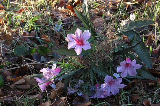 Tja ... zwar Blümchen und auch lila ... aber dieser Frühling ist eher ein Herbst und außerdem künstlich. Zum echten Frühling ist noch weit ... zumindest ein paar Schritte müssen wir gehen ...