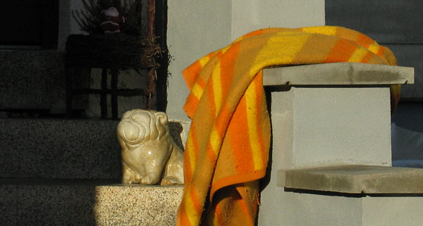 Er nimmt ein Sonnenbad, eine Minute lang noch.