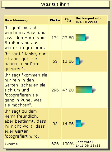 Erstmal: ganz großes Dankeschön ... 626 Personen haben mitgemacht, das