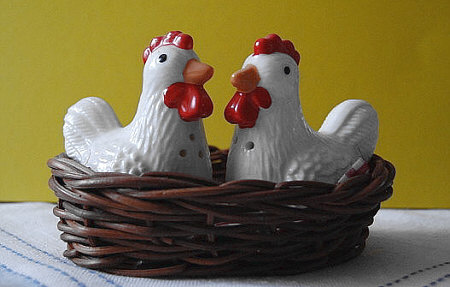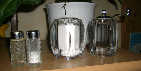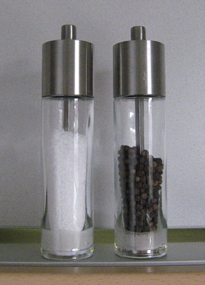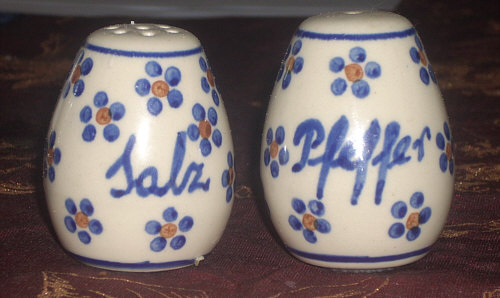 schnell schnell herbei so holt ganz schnell das Ei denn wenn wir eines genug haben, dann Salz und Pfeffer ;)) Willkommen bei den seelenfärblerischen Salz- und Pfefferstreuer Folge 1 -- Was ich mir sehr lobe ... Catrin hat ihre Streuer nicht extra poliert. So solls ja auch sein, denn Streuer sind Gebrauchsgegenstände und wer poliert sein kleinen löchrigen Freunde schon täglich. ![]() Klassisch schlank ... und die größere Variante. Pfeffermühlen sind übrigens den Streuern gegenüber völlig gleichberechtigt. Catrins Mühle ... ![]() ... scheint eine Hebelwirkung wie die gute alte manuelle Kaffeemühle zu haben ;). -- Ich veröffentliche die Streuer nach Eingang ... die zweite Mail war die von Schlehdorn. Dort gibt es die Streuer für jeden Tag ... ![]() ... und auch die Streuer "für gut": ![]() Upps, die sind ja bunter als die fast edlen alltäglichen Streuer. Aber die haben schon was, die Bunten. Mit passendem Teller und nur einem Loch im Pfefferstreuer. Ich hab das nie verstanden, dass manche Pfefferstreuer nur ein Loch haben. Man kann doch viel besser streuen, wenns löchriger ist. Natürlich müssen die Löcher umso kleiner sein, je zahlreicher sie sind. -- Gestatten: Paul und Paula ... ![]() ... die Streuer von Petra. Ob die bald Freunde werden ? Oder schon welche sind, es sich aber nicht anmerken lassen ? Oder bis eben noch Freunde waren ? Dieses Ehepaar ist in der Küche zu finden, ihre Haustiere leben im Partykeller: ![]() Die legen kein Ei, sie salzen es. ![]() Annäherungsversuch in weißblau. -- Richtig elegant ... ![]() ... gehts bei Ilse zu. Die streuen aber nicht, die mahlen. Auf Knopfdruck ? Könnte man meinen, sieht aus, als müsste man drücken statt drehen. -- Bei Heni ... ![]() ... gibts den ganz normalen Alltag mit dem Streuer aus dem Supermarkt und dem kleinen weißen Salzgefäß. Die sind aber nur fürs Kochen zuständig. Wenns Essen auf den Tisch kommt ... dann muss ja eigentlich nicht mehr gesalzen werden *fg*. Aber uneigentlich kommen dann die Kühe von der Weide auf den Tisch gerannt: ![]() Es gibt noch zwei sehr entfernte Verwandten ... ![]() ... in denen Kräutersalz und Zitronenpfeffer sind. -- Zwei ganz unterschiedliche Streuerpaare hat die Xenophora: ![]() die klassischen aus Glas auf Glas ![]() die ehemals modernen Roten, die aber so zeitlos designt sind, dass sie immer wieder mal modern sind und vielleicht sogar irgendwann Kult. -- Eine bunte Mischung steht bei Strandsteine auf dem Tisch: ![]() - der klassische kleine Weiße, der schon 40 Jahre alt ist - der fast genauso klassische von Tupperware - der kleine Reisestreuer, der schon viel von der Welt gesehen hat - und das kleine Flügelwesen ... ![]() ... das ein Fundstück von einem Flohmarktbesuch ist. -- Besonders praktisch sind die Streuer ... ![]() ... von Anke, denn da steht laut und deutlich drauf, was drin ist ;)). Nicht nur S + P, sondern die Luxusausführung, was die Sprache betrifft. -- Den klassischen kleinen Weißen hatten wir schon (und werden wir bestimmt noch öfter sehen) ... ![]() ... doch bei Menzeline gibts zusätzlich den klassischen kleinen pfeffrigen Braunen. -- ![]() Liebe geht durch den Magen ? Vielleicht Pfeffer und Salz durch die Augen ? Ganz sicher Die Streuer gehören der Janna ? Auch sicher Sind es kleine bunte Huibuhs zum Würzen ? kann schon sein Vertragen sich eigentlich Salz- und Pefferstreuer ? ![]() Mehr als das ... sie lieben sich :)). Die Kinder kommen dann als Salz- und Pfefferkörner auf die Welt *fg*. -- Das war die bunte Welt der seelenfärblerischen Salz- und Pfefferstreuer, eine Welt, die mitten im Alltag zu finden und trotzdem oder gerade deswegen so interessant ist. Einige weitere Folgen wird es noch geben :). |