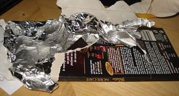 Etwas genauer wie "nur" Alufolie war die Antwort "Alufolie einer Tafel