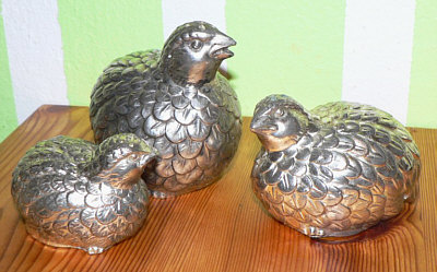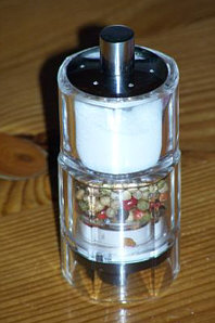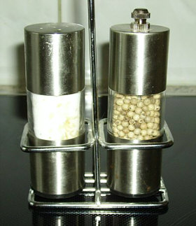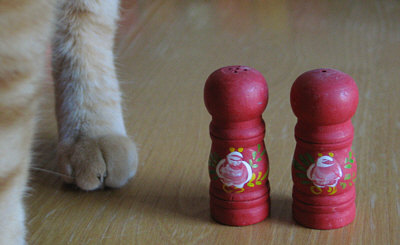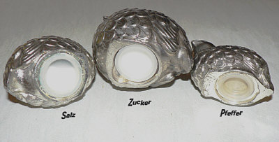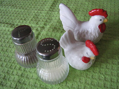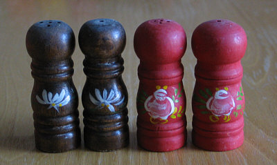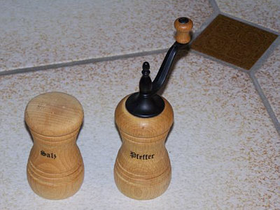 Gesalzen und gepfeffert ins Wochenende :)). Denn es folgen die seelenfärblerischen Salz- und Pfefferstreuer Folge 3 ( Folge 1 - Folge 2 ) -- Nachdem ich ja schon in der ersten Folge unsere eigenen Salz- und Pfefferstreuer vorgestellt hatte, stellte ich kurze Zeit später fest, dass es im Haus noch einige mehr gibt. In Kisten im Keller fanden wir welche. Diesem Pfefferstreuer ... ![]() ... fehlt das Salz-Gegenstück. Das ist "verschütt" gegangen ... *lach*. In den 70er Jahren sah man diese Streuer im passenden Gewürzbord überall. Beate hatte ein solches und ich auch. Heutzutage steht dieser Streuer kurz vor dem Wegwerfen. Ebenfalls im Keller gefunden: ![]() Die sehen größer aus als sie sind ... ziemlich niedlich klein ist die Realität. Gar nicht so einfach zu fotografieren, denn ... ![]() ... da kommt jemand mit Pfoten und setzt sich neben die Streuer. Es kam noch schlimmer *gg*: ![]() Eigentlich sollte das Bild so aussehen ;)): ![]() Diese haben wir "nicht" im Keller gefunden ... sondern die habe ich im Sozialkaufhaus gekauft. Denn ich kann im Moment nicht an Salzstreuern vorbei ... ohne an Seelenfarben zu denken. Und wenn die Streuer dann günstig sind, werden sie kurzerhand gekauft. Diese hier auch: ![]() Ganz billig im großen Supermarkt gesehen, als zeitlos eingeordnet und gekauft. Ich glaub, ich mach noch mal ein Paket für den Lutz ... soviel salzen wir doch gar nicht ;)). Oder ich nehm sie als Zugabe beim Lotto *gg*. Wir haben noch zwei Streuer im Keller gefunden, die behalten wir aber: ![]() Ja, ich weiß, der Fotograf spiegelt sich ;)). -- Nun aber wieder zu den Seelenfärbler-Streuern, sonst stimmt ja die Überschrift gar nicht mehr. Die Reise geht nun ... nicht weit ... nur ein paar Kilometer ... ich könnte fast hin laufen. Wäre allerdings stets den Berg hinauf, so würde ich doch lieber das Auto nehmen *gg*. Dann könnte ich ausgeruht die Kühe besuchen ... genauer gesagt: die Kuhsammlung von Helga R. ... ... und wer Kühe sammelt, hat auch Salz- und Pfefferstreuer: ![]() -- Immer wieder beweisen solche Streuer, wie abwechslungsreich dieses Thema ist. Denn das Bild von Libellchen zeigt einen sehr exotischen Vertreter dieser Küchenutensiliengattung: ![]() Mit Visier, Schwanz und Rollen. Könnte dem Film "Ben Hur" entsprungen sein. Diesen Streuer gabs mal bei einem Kaffeeröster. Man kann ihn aufziehen und über den Tisch fahren lassen. Von wegen "gib mir mal den Streuer rüber" ... da heißt es "zieh mal auf und lass mal rollen". -- Grauer Alltag ? Nicht bei Sonja, denn dort wird farbenfroh gestreut: ![]() Und es gibt da noch welche ... eine ganz besondere Familie: ![]() Die beiden kleinen Hühner salzen und pfeffern ... und was macht das große Huhn ?? Das zuckt ... ähm ... "zuckert" meine ich natürlich ;)). Sind übrigens Fingernagelmörderhühner ... zumindest, wenn man sie nachfüllen will: ![]() Oder gehen die leicht auf (ich kanns eher nicht glauben) ? -- Streuer für die moderne Küche in aktueller Alu-Optik findet man bei Denise: ![]() So was würde bestimmt auch dem Herrn Lafer gefallen ;). -- Wer jetzt glaubt, er hätte ziemlich alle Streu-Varianten gesehen ... niedliche Tiere, kühle Eleganz, praktischer Minimalismus, verzierte Nostalgie, humorvolle Ideen ... der stellt gleich fest, dass es nichts gibt, was es nicht gibt. Denn die Handschmeichlerstreuer fehlen noch: ![]() Bildermäusel ist es, die diese Streuer zärtlich berühren darf. Warum fällt mir gerade der Name "Colani" ein ? ;)) -- Bei der Ruth leben alt und neu harmonisch beieinander ... zuerst die älteren Vertreter: ![]() Die Mühle für die große Umdrehung ... beides in rustikalem Holz. Oder ebenfalls schon älter, aber klassisch elegant in Porzellan: ![]() Ganz neu (hat Ruths Mann zu Weihnachten geschenkt bekommen) ist dieser Kombi-Streuer: ![]() -- Das Huhn legt ein Ei, manchmal auch zwei auf das Ei gehört Salz Gott erhalts ... ... oder so ;)). Gedichtet zu Ehren von Sabines Streuern: ![]() -- Wenn dein Schiff fade in seichten Gewässern plätschert, dann wird es Zeit für den Leuchtturm, der dir den Weg zur Würze zeigt: ![]() Rot und weiß geringelt stehen sie beim Jürgen in der Küche ... ... und freuen sich immer, wenn sie gespült werden. Wasser ... endlich Wasser ... *gg*. Zwei weitere Folgen wirds noch geben und ich kann Euch sagen, auch da werden wieder ganz tolle Exemplare dabei sein :)). |