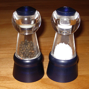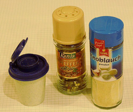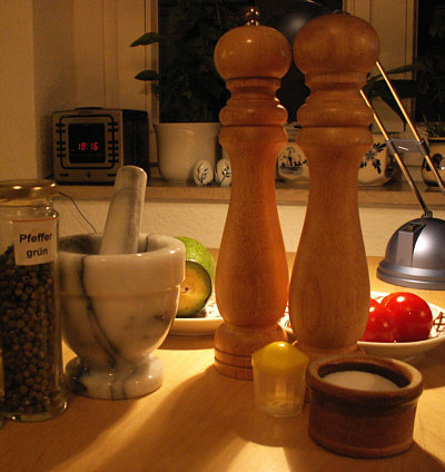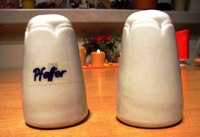 Es wird mal wieder Zeit, dass hier im Kalenderblatt gepfeffert und gesalzen wird. Es folgen die seelenfärblerischen Salz- und Pfefferstreuer Folge 4 ( Folge 1 - Folge 2 - Folge 3 ) -- So, und nun gucken wir mal, wo der Pfeffer so wächst. Bei Birgit B. wächst er ... in Reih und Glied: ![]() Ganz links, das ist der Älteste ... schon volljährig, über 20 Jahre alt. Ein wenig kaputt, aber noch in Gebrauch (wie die meisten von uns *fg*). Wieder ernst werdend ... der Salzstreuer ist eine Teil aus der Anfangszeit mit ihrem Mann. Vom Streuer kann Birgit sich nicht trenne, weil sie sonst, das Gefühl hat, ein Stück Gemeinsamkeit wegzuwerfen ... Birgits Mann ist 2001 verstorben. Die anderen Streuer hören auf den Namen "Tupper" und die beiden ganz rechts sind ganz neu. Könnt Ihr da ein Gebäude drin entdecken ? Schaumermalgenauerhin: ![]() Hmm ... mit viel Phantasie ... aber nur wenns man weiß. Denn diese beiden Streuer sind diesem Gebäude da nachempfunden: ![]() Das Burj al Arab. Da würde mich aber mal sehr interessieren, wie die Salzstreuer in diesem Hotel aussehen ?? -- Wusstet Ihr, dass Salzstreuer auch Rüssel haben können ? Hier der Beweis: ![]() Pfeffer oder Salz ? Keine Ahnung ... und auch keine Ahnung, ob dieser Streuer ... ![]() ... der gleiche ist oder der mit dem Pfeffer oder Salz. Nichts von S oder P oder Männchen oder Weibchen zu erkennen. Trotz Rüssel *fg*. Ähmm ja ... Lesen bildet ... denn Friedrich hat mir doch alles in seiner Mail geschrieben. Das ist nur ein Streuer, er kann für Pfeffer oder Salz verwendet werden und heißt "Oki". Okidoki :). -- Bei Helga-Ingo treffen wir wieder einen alten Bekannten: ![]() Bei dieser Version muss aber jedes Mal ein Euro bezahlt werden, damit er streut ;)). Es folgt die laut Helga sündhaft teuren WMF-Streuer ... ![]() ... die eigentlich Mühlen sind und nach Angaben der bayrischen Hausfrau ihr Geld wert. Es gibt noch ein Streuerpärchen ... das normalerweise im Geschirrschrank vor sich hin staubt. Doch fürs Kalenderblatt wurde es poliert und in Szene gesetzt: ![]() Eigentlich gehöhrt es ja der Tochter von Helga, aber aus Platzgründen kams zur Mama. Wo's dann aus Platzgründen verstau ... sorry, ich wiederhole mich *fg*. Muss aber mal sagen, dass die viel zu schön zum Imschrankstehen sind. -- Ein richtig schönes Streuer-Stilleben hat mir Elouise geschickt: ![]() Ist alles in Gebrauch ... und bei Elouise wird der Pfeffer sogar gemörsert. Salz wird auch gestreut, aber mit den Fingerspitzen prisenweise. Vorne der kleine ist aus Plastik und unverwüstlich. Oder unkaputtbar, wie man auch sagen kann ;). -- Auf eine zurückhaltende Art dennoch stilvoll ... ![]() ... sind die Streuer von Erika (Heide). Noch aus DDR-Zeiten und damals preiswert ergattert. Das Wort Pfeffer, das ist ein Aufkleber, vorher waren da Abziehbilder drauf. Warum ? Weil es diese Streuer ohne Dekor und ohne Verschluss gab. Erika sagt "Man mußte sich halt etwas einfallen lassen. Wir haben damals von den Gummikappen, die es zum Verschließen von Saftflaschen gab, den oberen Teil abgeschnitten passte perfekt und hält heute noch". Streuer ohne Verschluss ... es gibt Dinge, die es nicht gibt und doch gibt es sie. -- Nun zum Lutz, der ja solche Streuer sammelt und dessen Sammlung ich in Folge 2 vorgestellt hatte. In seiner Mail stand, dass er nur Bilder von den Sammelobjekten geschickt hatte, aber nicht von den alltäglichen Streuern. Und natürlich wollte ich wissen, womit ein Streuersammler jeden Tag so salzt und pfeffert. Damit: ![]() Ahm ... nun ja ... und ... wenn ich mirs recht überlege, kann ich das gut verstehen. Erstens ist es praktisch und zweitens kann jemand, der Streuer sammelt, diese wertvollen Dinge nicht alltäglich in den Gebrauch nehmen. Sammelobjektive sind heilig und schützenswert. PS: ich hätte gerne einen Knoblauchtoast ... warum kommt mir gerade dieser Gedanke ? -- Bei Renate H. wird das Salzen und Pfeffern zur Herzenssache erklärt: ![]() In Beiden ist Salz, weil Pfeffer nicht gestreut, sondern gemahlen wird. Die Herzen hat die Renate draufgeklebt ... oder gemalt. Viel haben die Streuer schon gesehen und erlebt und gesalzen, denn sie sind schon über 50 Jahre alt und ein Erbstück von der Mutter. -- Diese feinen Kleinen ... ![]() ... hatten wir schon mal gesehen bei jemand anderes ... und auch Petra aus Kufstein hat solche. Und diese hier hat Petra auch: ![]() Und es gibt noch ein Set mit Salzglasur ... das sich leider zur Zeit irgendwo versteckt hat. Man könnte man mal ein Treffen bei der Petra machen ... und gemeinsam Salzstreuer suchen *fg*. -- Sing "griechischer Wein ... ist so wie das ... Salz der Erde" ... oder so ... denn Daniela ... ![]() ... hat sich aus dem Griechenlandurlaub einen Streuer mitgebracht. Ist zwar schon fünf Jahre her, aber man den Streuer ja auffüllen. -- Griechenland ... Athen ... Eulen nach Athen tragen ... gute Idee ;)). ![]() Die Streuer von Ursula ... über 20 Jahre alt ... ein Geschenk von ihrer Tochter. Früher waren die Streuer mal silbern ... und wer Hausfrau oder -mann ist, weiß, wie Silber, wenn es in Gebrauch ist, die Farbe ändert. Soll ich Euch mal was sagen ? Gerade diese changierenden Farben sehen gut aus. -- Das war Folge 4 und ich habe gerade mal nachgeschaut und festgestellt, dass es noch zwei weitere Folgen geben wird. Ganz tolle Streuer warten noch auf das Kalenderblatt-Rampenlicht. Es bleibt spannend. Euch einen gut gewürzten Tag :)). |
