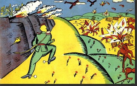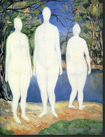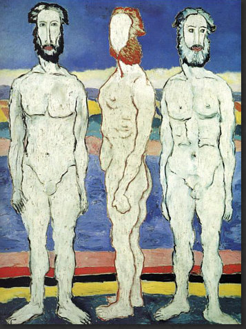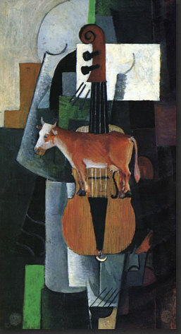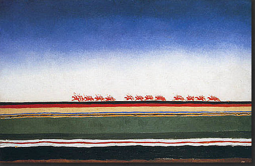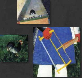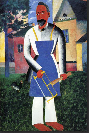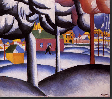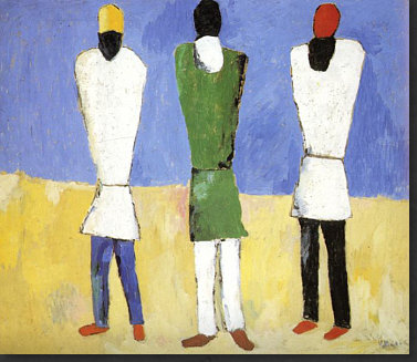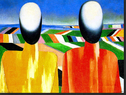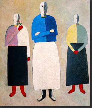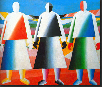 Hey, ich hab Mut ... weil der Kasimir auch Mut hatte. Ich hab den Mut, ein riesig langes Kalenderblatt mit seltsamen Bildern zu veröffentlichen. Vielleicht habt ja auch Ihr den Mut, alles zu lesen ;). Ich könnte auch ein einziges, aber wunderschönes Frühlingsbild bringen, das wäre dann "normal", weil es eben Frühling ist und solche Bilder immer gut ankommen. Aber wenn wenn alle immer alles so machen, wie es schon immer gemacht wurde, dann wird alles immer so sein, wie es immer war. Wenn aber jemand sagt "ich mach das alles anders", dann ist das Mut. Manchmal geht's furchtbar schief, manchmal wird's belohnt. Das heutige Kalenderblatt-Thema habe ich spontan geändert. Was ich heute hier zeigen oder schreiben wollte, wusste ich nocht nicht, aber das würde sich finden ... nachdem ich die "Kunst des Tages"-Rubrik aktualisiert habe. Also schnitt und optimierte ich Bilder, suchte und fand Gedanken, schrieb sie auf und die Kunst-Rubrik wurde länger und länger, irgendwann waren auf der Seite über 20 Bilder ... ... und zu lang ... und außerdem ... begann mit jedem neuen Bild der Maler mich mehr und mehr zu faszinieren. Also beschloss ich: das wird ein Kalenderblatt. Wenn auch kein mehrheitsfähiges, aber ... ... das war dieser Maler zu seiner Zeit bestimmt auch nicht. Auch Eure "Kritiken" zu diesem Bild ... ![]() ... waren mehrheitlich eher vernichtend. Komische Menschen, komische Füße, gefällt nicht und die Blume kann das Ganze nicht retten. Manche versuchten, das Bild dennoch zu lieben, aber in den Schoß fiel ihnen diese Liebe auch nicht. Ich finde es faszinierend, weil es ... anders ist. Das reicht schon für die Faszination, denn alles, was hinter dem bisher bekannten Horizont statt findet, ist Neuland, ist spannende Expedition, ist eine Entdeckungsreise ... ... und deswegen hieß die Kunst-Rubrik am Anfang ja auch so. Das Bild da oben könnte ich nicht malen. Abmalen vielleicht, aber einfallen würde es mir nicht. Dieses Bild aber ... ![]() ... das könnte ich malen. Ein schwarzes Quadrat auf weißem Grund. Das kann ein Kind malen, wenn es ein Lineal hat und die Oma könnte es auch, wenn sie nicht zu sehr zittert. Aber ... Ihr müsst jetzt ganz stark sein ;)) ... dieses Bild, das sich, welch Wunder, das "schwarze Quadrat" nennt ... ... gilt als eine der Ikonen der Malerei des 20. Jahrhunderts und hängt in einer der größten und berühmtesten Kunstsammlungen Russlands. Warum denn das ? Vielleicht weil es 1915 gemalt wurde. Wenn man weiß, dass es solche abstrakten Bilder schon gibt, dann fällt es leicht, "das könnte ich auch" zu sagen. Aber als erster Mensch so etwas zu malen, das ist schon etwas Besonderes. Das ist also nicht nur ein Quadrat, das ist Kunst. Punkt ... äh, Quadrat natürlich. Das Bild hängt in Russland ... weil auch der Maler ein Russe war. Das ist er ... ![]() ... der Herr "Kasimir Sewerinowitsch Malewitsch" (1878-1935). Seine Bilder hinter ihm ... haben etwas von Kandinsky. Einen Maler, den ich sehr mag, dessen Bilder ich aber wegen Copyright nicht veröffentlichen darf. Denn Kandinsky wird erst 2015 copyrightfrei. Da müssen wir uns noch etwas gedulden ... also mache ich mit Kasimir weiter. Denn wenn mich nicht alles täuscht, dann ist das Bild da hinter seinem Kopf dieses Bild: ![]() Ist in Farbe doch schöner als schwarz-weiß. Vielen Kästchen, Linien, klare Geometrie. Wie farbige Lineale, kunstvoll arrangiert. Aber sowas könnte es ja in Wirklichkeit geben ... diese Gestalten aber ... ![]() ... sind reine Fantasie. Die Farben sind schön ... die Landschaft ein Hingucker ... und die Gesichter ... ... fallen in die Abteilung "freie Interpretation einer mundaugennasenlosen Schattierung" ;)). Aber das muss man erstmal malen ... im frühen 20. Jahrhundert. Das ist ein Bild, das auch heute nicht unmodern wirkt, auch wenn es nicht jedem gefällt. Aber dennoch seine Freunde finden wird. Manchmal hat der Maler auch die Personen ausgespart und nur den Hintergrund gemalt: ![]() Als wäre jemand mit einer großen Schere da gewesen. Relativ aufgeräumt, dieses Bild ... ... während hier ... ![]() ... so allerhand ineinanderverschachtelt rumliegt ;)). Ob's in dem Herrn auch so ausgesehen hat ? Sagen wir mal so: nicht nur. Denn er konnte auch fast lieblich malen: ![]() Ja, er konnte sogar den Menschen Gesichter geben: ![]() "Portrait einer Frau", wobei hier eine gewissen Männlichkeit in den Gesichtszügen liegt. Zumindest empfinde ich das so ... und ich empfinde dieses Bild auch ausgeruht, friedlich, farbig ... frühlingshellsommerlich. Es sei denn, ich schaue mir die Tischdecke genauer an ... ist das nicht Blut ... ah bäh ... ich hab wohl zuviel Filme gesehen, in denen das so war ;)). Die Farben sind ja fast impressionistisch ... während in seinen anderen Bildern eher eine gewissen Kühle zu finden ist. Hier ... ![]() ... haben wir das eine (erkennbares Motiv) und das andere (die Farben). Wirkt gestellt, so stellt man sich hin, wenn man fotografiert wird ;). Aber was heute die Fotografie ist, war ja früher die Malerei. Schwenken wir noch mal zu den Gestalten, die er öfter gemalt hat: ![]() Bunte Umrisse, Flächen, Farbverläufe. Im frühen 20. Jahrhundert gemalt, das muss man sich immer wieder vor Augen führen. Wenn ich mir die Selbstportraits des Malers betrachte ... ![]() ![]() ... so komme ich zu dem Schluss "Genie und Wahnsinn liegen nah beieinander". Und dann sehe ich dieses Bild ... ![]() ... lese, dass das auch ein Selbstportrait ist und bin erneut überrascht. War Picasso normal ? War es Dali ? Ist doch klar, dass ein Maler, der neue, innovative Bilder gemalt hat, auch im Kopf innovativ sein muss, denn diese Bilder sind ja der Spiegel seiner Seele. Eine Malerseele, die auf vielfache Weise immer wieder anders ist, denn dieses Bild hat er auch gemalt: ![]() Bilder zwischen ... ![]() ![]() ... bedrohlicher Industrie und freundlicher Oase. Ja, er konnte auch richtig optimistische Bilder malen: ![]() Der Frühling mit seiner hellen Farbigkeit. Wer dieses 