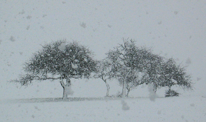 Bäume in dichtem Schneefall ... Bäume, die ... so kommt es mir vor,