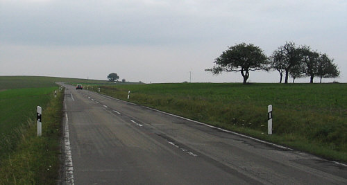Strasse und wenn ich Adleraugen hätte, auch diese Bäume: