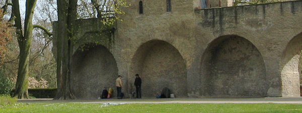 Die Wand seines Wohnzimmers ist eine Mauer, die Decke ein Rundbogen.