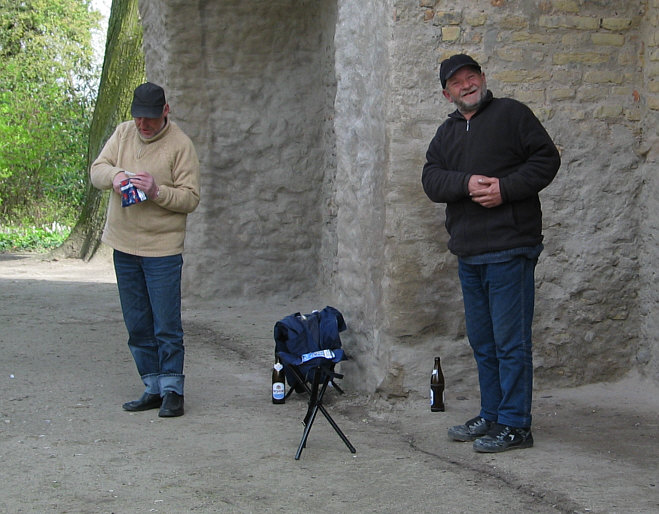 Dieses Foto ... ![]() ... wäre das letzte gewesen, dass ich in diese Richtung fotografiert hätte. Und es war schon eine Notlösung, wenn unten Menschen sind, dann fotografiere ich halt nur den Turm. Natürlich wurde ich von den Beiden beobachtet und ich schaute auch hin zu ihnen. Und in diesem Moment stellt sich Udo in Positur ... ![]() und sagt "willste nicht auch einmal ein Foto von mir machen". Knips ... schon geschehen ... das lass ich mir nun nicht zweimal sagen. Das wars aber auch schon für diesen Moment. Ich hatte die beiden fotografiert, an eine Veröffentlichung eher nicht gedacht und also auch nicht vor, die beiden zu fragen, ob ich das darf. Aber es waren dennoch alle möglichen Gedanken in meinem Kopf und ich drehte mich erstmal um und fotografierte die Rückseites des Doms, ![]() weil ich ja deswegen hier hin gelaufen war. -- Diese Bitte um ein Foto war wie eine Einladung. Wie eine offene Tür, die es heutzutage (auch bei Obdachlosen) selten gibt. Ein Gespräch gab es aber immer noch nicht, doch ich traute mich, weitere Bilder zu machen: ![]() Sooo mutig, dass ich jeden Obdachlosen fotografiere, bin ich nun auch nicht. Sie sind ja keine Ausstellungsstücke, auch wenn jeder hinschaut. Wenn ich aber merke, dass sie gerne fotografiert werden, dann mache ich das natürlich. Ich bin ja nun eher nicht spendenfreudig, weil ich schon wissen will, ob jemand wirklich bedürftig ist und alle sich ihm bietenden Möglichkeiten ausgenutzt hat. Auf jeden Fall folgte danach das berühmte Portraitfoto und dann noch ein paar Bilder von Beiden: ![]() Es folgte jetzt das erste, kurze Gespräch ... dann suchte ich Beate und fand sie auf der anderen Seite des Doms (so ungefähr hatte ich schon gewusst, wo sie ist ;)) ). Ich sagte Ihr, dass es etwas dauern wird, bis ich wieder komme und ging zurück zu den Beiden. Nun folgte ein 10 Minuten langes Gespräch mit ihnen und ich gab ihnen auch 10 Euro (je 5 von Beate und mir), worauf sie spontan sagten, dass sie von diesem Geld etwas essen gehen wollten. In diesem Gespräch erfuhr ich, dass Udo (schwarzer Pullover) 52 Jahre ist, davon 28 Jahre auf der Straße. Der Grund: Scheidung. Detlef ist 5 Jahre obdachlos, sein Grund: Tod der Ehefrau, dann Alkohol, Wohnung verloren undsoweiter. Ob ich die Bilder veröffentlichen darf, fragte ich. Ja, gerne, war die Antwort. Ich fragte sie, ob sie betteln oder wie sie das, was sie unbedingt brauchen, finanzieren. Sie könnten sich bei der Stadt pro Person 11,60 € Unterstützung abholen. Was mich nun doch überrascht hatte, denn ich dachte, Obdachlose hätten diesen Anspruch gar nicht. Allerdings ist es wohl so, dass nicht alle das auch in Anspruch nehmen. Und sonst würden sie auch noch auf der Straße sitzen und betteln. Aber es wäre wichtig und hätte auch Priorität, dass das Essen und nicht nur das Trinken gesichert sind. Weil er mir so nüchtern vorkam, fragte ich mal um die Ecke: "normalerweise sagt man ja, dass Menschen wie ihr Alkoholiker seid". "Sind wir auch" war die offene und ehrliche Antwort. Udo will gar keine Wohnung und irgendwann mal auf der Straße sterben. Detlef hat mir von der Geschichte des Speyerer Doms erzählt. Verstand versoffen ... bei den Zweien nicht. Die Frage, ob sie schon immer in Speyer lebten, verneinten sie ... Udo kommt aus dem Ruhrgebiet und Detlef aus Berlin. Sie reisen nun von Stadt zu Stadt und ihr Ziel sind immer Städte, die ihnen diese 11 Euro bezahlen ... und das macht nicht jede Stadt. Nach Koblenz gings demnächst ... auf meine Frage "wie ?" gabs die Antwort "mit dem Zug". Naturlich fragte ich weiter "und wenn dann der Schaffner kommt ?" und erhielt die Antwort "dann sagen wir, das wir obdachlos sind, was soll er dann machen. Er kann uns höchstens an der nächsten Station rausschmeissen, dann steigen wir in den nächsten Zug wieder ein". Ich erfuhr noch, dass Udo Detlef aus so einem Containerdorf "gerettet" habe und dieses ganz tolle Gespräch fand dann irgendwann sein Ende. -- Es kamen Menschen des Weges. Sesshafte Sonntagsmenschen ... Vater, Mutter, Kegel, Kind. Das Kind war ein kleiner Junge mit einem Ast in der Hand. Damit schlug er auf alle Gänseblümchen ein, rupfte einige aus und legte die Skalps auf die Erde. Völlig ungestört von Vater und Mutter. Da schüttelte ich nur noch den Kopf. Respekt vor der Natur gehört zu den wesentlichen Dingen, die Kinder lernen sollten. -- Auf der einen Seite: ein herzliches Gespräch mit Obdachlosen Auf der anderen Seite: Kopfschütteln über Sesshafte -- Hundert Meter weiter kreuzten sich unsere Wege (mittlerweile war Beate wieder an meiner Seite) erneut ... Detlef war wasweißichwo gewesen und auf dem Rückweg lief er zufällig an uns vorbei ... und fragte mich, wie denn meine Homepage heißen würden. Ich schrieb es ihm auf und meinte "ich denke aber nicht, dass ihr einen Laptop habt und surfen könnt" ... und die Antwort war "aber im Arbeitsamt, da stehen Computer". Lächelnd ging ich weiter.