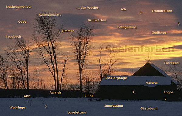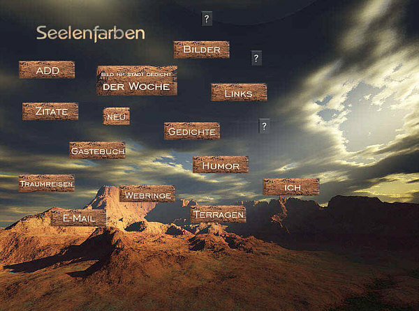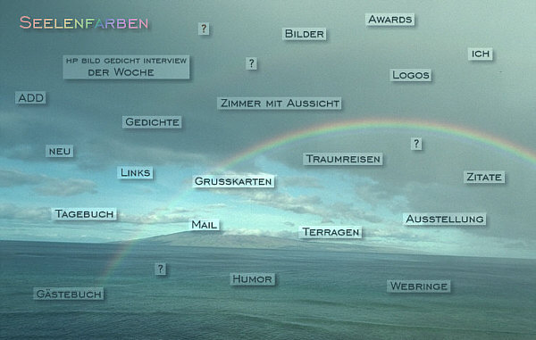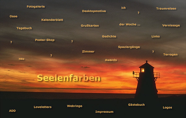 Am Anfang war die Idee. Dann kam das Papier. Danach das Gekritzel: ![]() Das war, und den habe ich immer noch und hüte ihn, der erste Seelenfarben-Startseitenentwurf. Daraus ist dann zuerst eine einfarbige Startseite entstanden, nur die Punkte der "... der Woche"-Rubrik waren farbig. Doch schon wenige Tage später sah dass alles anders und so aus: ![]() Das war die erste Seelenfarbenstartseite. In der obigen Form gab es sie aber nicht lange ... denn die Rubrik "buntes Internet, jeden Tag neu" war damals nur eine Idee geblieben und wurde schnell wieder runter genommen. Jeden Tag etwas Neues ... nee, das könnte dann doch zu stressig werden. Ähm ja ... ich wusste damals noch nicht, in welch umfangreicher und vielfältiger Weise ich Jahre später jeden Tag Neuigkeiten bringen werde ;)). Aber die Idee gab es damals, im August 2000, schon. Hinter Bilderwelt waren die Desktopmotive zu finden, ganze 4 Stück ;). Übrigens: wenn man die Seite "Faulheit" angeklickt hat, konnte man das da ... ![]() ... lesen *gg*. Zwei Monate später, im Oktober ... ![]() ... sah die Startseite so aus. Das waren nun keine Textlinks mehr, sondern einzelne kleine Buttons, die extra gestaltet waren und drüber lagen. Die Traumreisen gab es nun und die Fragezeichen. Und auch Terragen hatte ich inzwischen entdeckt. Hinter dem (...) fand sich ein geheimer Überraschungseingang, der sich "Wege" nannte. Ab 20 November 2000 begann die Frontpage-Zeit ... gleich mit einem neuen Bild: ![]() Es war sehr aufwändig, die einzelnen Buttons in die Grafik einzuarbeiten und ein Riesenaufwand, eine neue Rubrik zu integrieren. Die gesamte Seite mit mehr Bild drumrum: ![]() Am 18. Januar 2001 kam die Rubrik "Awards" dazu, am 4. Februar starteten "Art" und "Tagebuch". Es wurde also immer voller auf der Startseite. Und nun eine Version, die noch nie jemand gesehen hat ... ![]() ... denn diese braunen Buttons hatten sich dann doch nicht durchgesetzt, weil sie zu viel vom Bild weg nahmen. Fast ein halbes Jahr war dieses Bild auf der Startseite. Erst am 29. Juni wurde es dann doch sommerlich: ![]() Neu war das "Zimmer mit Aussicht", eine visuell auf besondere Weise ansprechende, wöchentlich wechselnde Linkrubrik. Aus "Art" war inzwischen "Ausstellung" geworden. Und die Grußkartenzeit hatte begonnen ... nun auch Grußkarten auf Seelenfarben. Damals hatte ich keine Ahnung, wie erfolgreich die werden würden. Bilderwelt hieß nun Bilder und es waren immer noch Desktopmotive dahinter zu finden. Am 30. August 2001 war wieder alles neu und anders: ![]() Neue Rubriken kann ich jetzt mal ausnahmsweise keine erkennen ;)). Was ich aber sehe, ist ein schiefer Horizont ... das würde es heute nicht mehr geben. Gerade mal vier Wochen später gabs eine Änderung: ![]() Neu war nun die Fotogalerie, denn ich hatte meine erste Digitalkamera gekauft. Damit es zu keiner Verwechslung mit meiner "Bilder"-Rubrik kommt, wurde diese dann in Desktopmotive umbenannt. Ein Fragezeichen kam dazu ... nun waren es 5. Im Dezember 2001 kam noch etwas hinzu: ![]() Es gab nun den ersten Seelenfarben-Adventskalender. Am 27. März 2002 gab es noch immer dieses Bild ... ![]() ... aber kamen wieder mal Rubriken dazu: Spaziergänge und die Oase. Und sogar eine eigene Rubrik für den Grafikwettbewerb (habe ich jetzt erst entdeckt, wusste ich gar nicht mehr). Ausstellung wurde auch noch in Malerei umbenannt. Insgesamt sage und schreibe 16 Monate war dieser Regenbogen über dem Meer auf Seelenfarben zu sehen. Erst am 25. Dezember 2002 gab es dieses Bild: ![]() Hier taucht zum ersten Mal die Rubrik "Kalenderblatt" auf. Eine Rubrik, die zu einem ganz besonderen Raum, zu meinem "Wohnzimmer", wurde. Es folgte dieses Motiv ... ![]() ... und ab Sommer 2003 läutete dieses Bild ... ![]() ... eine ganz neue Seelenfarbenzeit ein. Denn ab diesem Zeitpunkt waren die Rubriken nicht mehr "auf" dem Foto, sondern standen rechts davon ... und das ist bis heute so geblieben. Das war ein kleiner Ausflug in die Geschichte der Seelenfarben-Startseite. |