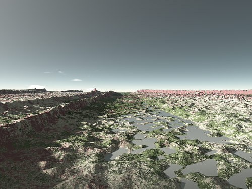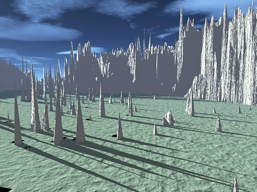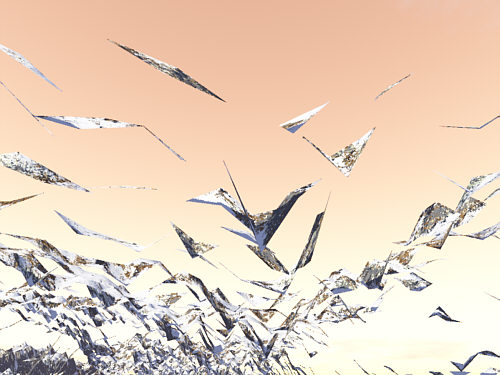 Lang, lang ist's her ... als ich mich täglich mit dem Programm "Terragen" beschäftigte. So einige Bilder sind damals entstanden und es gibt ja auf Seelenfarben immer noch eine Terragengalerie. Einige Bilder wurden, weil zu schlecht, mißglückt oder weil eine bessere Version existierte, nie veröffentlicht. Bis heute ... hier sind die Terragen-Raritäten: ![]() Hier war zwar das Licht schön, aber zu wenig drauf und der Horizont schief. -- ![]() schwarze Ecken im Wasser, ein Fehler des Programms ... -- ![]() "Schneegraben" nennt sich dieses Bild ... und es war zu weiß, zu kontrastarm -- Dieses Bild ... ![]() ... ist ja bekannt ... aber es gibt auch eine bisher unveröffentliche Version davon: ![]() Kein Wasser, sondern blauer Boden. -- ![]() Hier hat das Programm ziemlich heftig gesponnen und eher Origami statt Terragen geliefert ;)). -- ![]() Ein Bild, für den Wettbewerb "Sturm" gedacht ... aber zu ruhig. Dieses Bild ... ![]() ... wurde dann zum Wettbewerb geschickt. -- Ebenfalls bekannt ist diese Landschaft: ![]() Aber es gab auch eine wolkenlose Version mit Wasser: ![]() -- ![]() Nie veröffentlicht, weil es so sehr nach Blut aussah ;). -- ![]() Zu hell oben, zu dunkel links, zu starke Kontraste also. -- ![]() Eines der ersten Bilder, zu recht nicht veröffentlicht ;)). -- ![]() zu düster ... aber immerhin nicht gelöscht, sonst könnte ich es hier nicht zeigen ;)). -- |