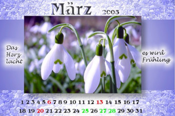 37 Kunstwerke warten auf Euch heute, denn es heißt mal wieder "Seelenfärbler stellen Ihre Kalenderblätter vor". Heute: Lilly aus der Schweiz und Ihre Kunstwerke aus den letzten 3 Jahren. Sogar ein bisher unveröffentlichtes Kalenderblatt ist dabei. Und Lillys Worte (in hellblau) natürlich auch :). März ![]() ![]() 2005: mein allererstes KB ... "wie wird’s wohl ankommen" ? 2006: das frische Küken geht mutig seinen Weg. ![]() 2007: alle Facetten des Frühlings in einem Kalenderblatt. Die Farben scheinen mir im Nachhinein etwas arg kitschig…*g* -- April ![]() ![]() 2005: trübes Wetter, knallige Farben zum *fröhlichmachen* :)). 2006: Hey, das war eine tolle Spielerei, die richtig Spass gemacht hat. ![]() 2007: In Holz einritzen, einbrennen oder ausbleichen. Das wollte ich bei diesem Kalenderblatt probieren. Das Gras ist aus der Corel Sprühdose und die Löwenzahnblüten sind aus einem Foto montiert. Den Spruch von Kafka fand ich besonders passend. -- Mai ![]() ![]() 2005: eine ganz zarte Knospe. 2006: Die CD ist zwar zerbrochen, aber Doktorchen ist ja schon da ![]() 2007: Das Bild, bei einer Radtour aufgenommen, ist so schön, dass ich gar nichts daran verändert hab. Der Monatsname ist in den Himmel geschrieben. -- Juni ![]() ![]() 2005: einen ganzen langen Tag gar nichts tun ... 2006: Kinderträume ... Erwachsenenträume ... ![]() 2007: Eines Tages hab ich in Photo-Paint die Pinsel entdeckt und angefangen zu malen. Daraus ist eine Leidenschaft geworden und das war mein allererstes Werk. Als Vorlage nahm ich ein Foto und malte Ebene um Ebene, Farbe um Farbe (stark wässrig) darüber, bis das Resultat gefiel. -- Juli ![]() ![]() 2005: seufz…;-) 2006: Fernweh ... Reisefieber. Spielerei mit Screenshot von Google Earth, Sonne, Foto, Cliparts und vielem mehr. ![]() 2007: Flimmernde Sommerhitze ... zum Glück gibt’s ein kühles Bad oder eine Landung im Mohnfeld ;-). Montage mit Fotos, Cliparts, kleinen Pinselstrichen, Farb- und Texteffekten. -- August ![]() ![]() 2005: sonnige Farben für unser Herz. 2006: heisse Sommernächte in *orange* ;-) ![]() 2007: "googeln" ... einmal anders ;-) ... am Anfang war ein Screenshot. In Corel Draw zeichnete ich die Rechtecke und Schaltflächen ab und beschriftete sie neu. Der Schriftzug "AUGUST" bekam das ungefähr gleiche Aussehen wie der Schriftzug Google und wurde dann auf die noch weisse Fläche gesetzt. Zuguterletzt kam zwischen Zeichnung und Hintergrund ein Urlaubsfoto mit blauem Meer und wurde halbtransparent durchscheinend gestaltet Ein schöner Spruch und zwei Fischlein ... das wars. Die Idee ist beim Faulenzen und Sonnenbaden gekommen. -- September ![]() ![]() 2005: Bastelei mit Birne, Mann und Pferd. 2006: wunderbarer Herbst. ![]() 2007: Nach der Anstrengung, die Belohnung mit der Aussicht auf das Tal. Der Blick vom Brisi (Churfirsten) auf das Toggenburg. Um die Stimmung nicht zu stören, ist der Monatsname und der Spruch gläsern und unaufdringlich gestaltet worden. bisher unveröffentlicht: ![]() Weil ich grade ein schönes Maisfoto geschossen habe, gabs diesmal zwei Kalenderblätter von mir ;-). -- Oktober ![]() ![]() 2005: ohhh…da war wohl frisch gestrichen;-) 2006: Ruhe und Entspannung haben wir uns alle verdient. ![]() 2007: Hier habe ich wieder Pinsel und Wasserfarben geholt und habe ein Foto von sonnengewärmten Trauben am Kaiserstuhl abgemalt. Und der Spruch vom Glück bringt Glück. -- November ![]() ![]() 2005: traumhafte Natur! 2006: und nur, weil November ist, weckst Du mich?? ![]() 2007: Dieses Foto ist bei einem Herbstspaziergang entstanden. Die leuchtenden Farben inspirierten mich, wieder zu (virtuellem) Pinsel und Farbe zu greifen. Diesmal nahm ich einen kleinen Pinsel, mischte Ölfarben und malte mit winzigen unzähligen Pinselstrichen auf vielen Ebenen. Dabei kam mein Grafiktablett zum Einsatz, das ich vom ersten Augenblick an heiss liebte :-). Am Schluss wurde die Hintergrundebene mit dem Foto gelöscht. -- Dezember ![]() ![]() 2005: lassen wir uns verzaubern… 2006: die schöne Aktion *wichteln* bei Seelenfarben. ![]() 2007: Weihnachten ganz anders, ganz schlicht, ganz ruhig und in ungewohnten Rottönen. Inspiriert hat mich eine Weihnachtskarte, die mir sehr gefiel. Welch ein Wunder ... ;-) ... auch dieses Kalenderblatt entstand mit Pinsel und Farbe. Die Schneesterne und Schriftzüge sind mit (virtuellen) Schablonen aufgesprüht worden. -- Januar ![]() ![]() 2006: Das Eis kommt frisch geschnitzt aus dem Grafikprogramm 2007: Lebensfreude pur! ![]() 2008: Auch die Sternzeichen, die aus einem Font stammen, stehen einmal im Vordergrund. Mit den besten Wünschen für ein gutes 2008. -- Februar ![]() ![]() 2006: Jetzt geht’s aber richtig los :-) 2007: farbige zarte Glasfiguren und ein Lieblingsspruch von Hebbel. ![]() 2008: Der Jeanspo war einfach langweilig ... ;-). In Corel Draw wurde darum fleissig gestickt, ein Stempel gebastelt und Buttons gezeichnet, eingefärbt und beschriftet. Danach wurden alle Dinge in Photo-Paint an die Jeans befestigt, gestempelt ... usw. . Natürlich musste auch ein neues Markenzeichen mit Seelenfarben.de eingenäht werden. Danke für Eure Aufmerksamkeit. Ich hoffe, Euch eine kleine Freude bereitet zu haben. Lilly Ja, hast Du mit Deinen Grafikkunstwerken, liebe Lilly :)). Eure Meinung zu Lillys Kalenderblättern ? |