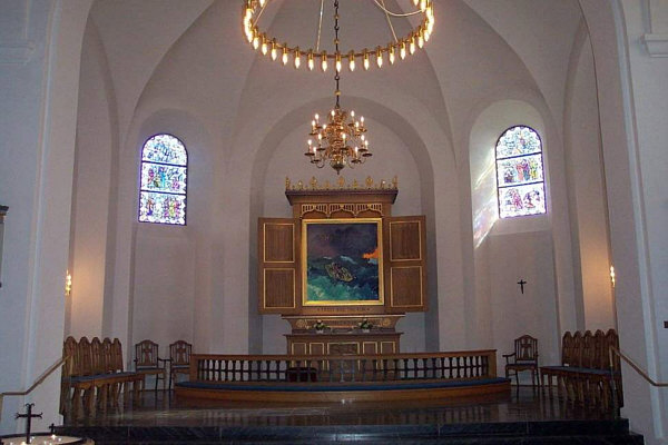 1915-17 restauriert und mit einer Bomholmer Kanzel versehen.
