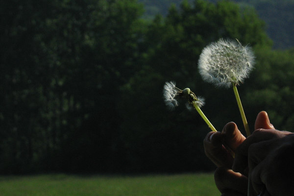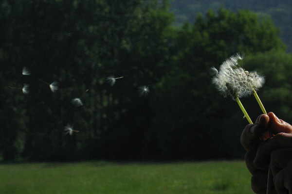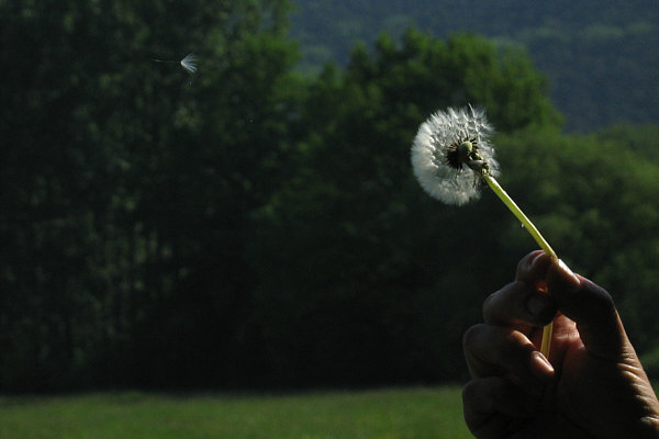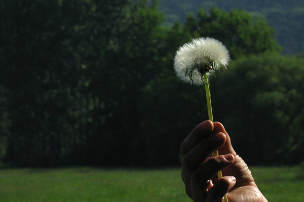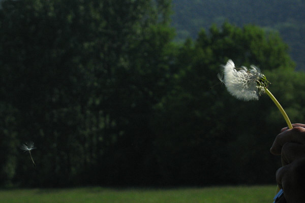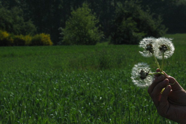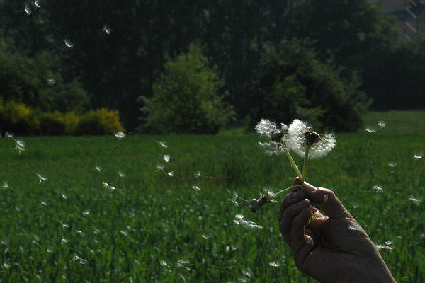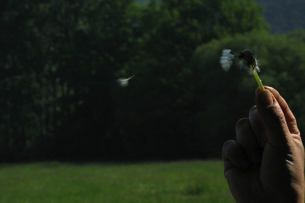 Es war einmal ein harmloser Tag im Mai. Und zwei Erwachsene, die warn so frei. 1. Versuch: ![]() Und nun: pusten ![]() Hmm ... tut sich nix. Die Pusteblume wankt, aber die Schirme sitzen fest. Ein Fläumchen flieht. -- 2. Versuch ![]() Und nun: pusten ![]() Na, schon besser ... ein Schirmchen im Höhenflug. Sekunden später: ![]() Die Schirme sind fort, die Kamera hat sie verpasst. Aber ein Kleines können wir noch sehen, wie es mit Karacho die Flucht ergreift oder so ;)). -- 3. Versuch ![]() Und nun: pusten ![]() Ha ... da links unten fliegts ... -- 4. Versuch ![]() Doppelt genäht hält besser ... und nun ... pusten: ![]() Ja ... genau so sollen sie fliegen. -- 5. Versuch ![]() Dreifach ist noch besser ... und nun ... pusten: ![]() Hat dem Fotograf, der Pustedame und den Schirmchen Spaß gemacht :)). |