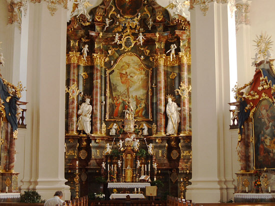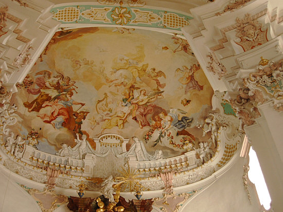 Das ist die Wallfahrtskirche Steinhausen, zu finden in einem Ortsteil
