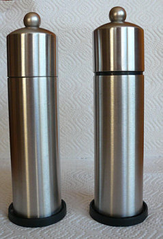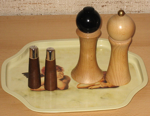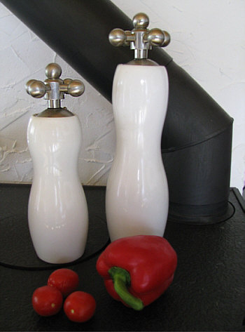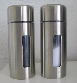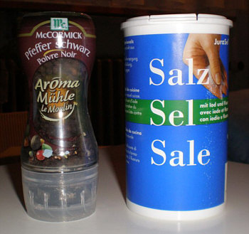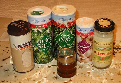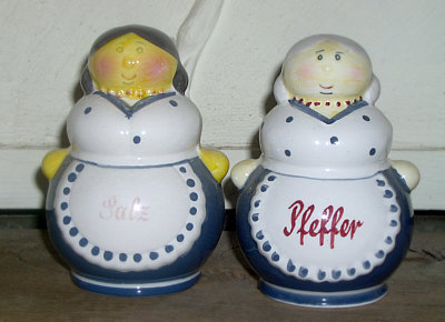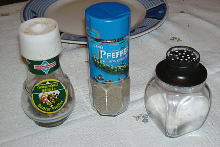 Ich hoffe Ich bete dass ich heute wirklich all die Streuer, die ich bisher vergesse hatte, veröffentliche und nicht noch mal jemanden vergessen habe. Denn so ganz den Überblick hab ich jetzt ehrlich nicht mehr. Darum die Bitte: Falls ich einen Streuer vergessen habe, bitte melden. Falls heute ein Streuer dabei ist, der bereits da war, auch melden. Falls das alles nix hilft, gibts halt noch ne Folge ;)). -- Los gehts bei der ... Folge Nummer 7 der seelenfärblerischen Salz- und Pfefferstreuer ( Folge 1 - Folge 2 - Folge 3 - Folge 4 - Folge 5 - Folge 6 ) -- Die vergessenen Streuer Nicole aus der Schweiz pfeffert und salzt so ... ![]() ... wie sie es auch im Supermarkt gekauft hat. Das Essen schmeckt auch ohne designte Streuer ganz super, da bin ich sicher ... stimmts ?? :)). -- Edel aus Stahl ... aus Edelstahl also ... sind die Streuer, die Mühlen sind: ![]() Die modernen Mühlen, die irgendwann mal die guten alten Mühlen sein werden. Mag man kaum glauben, aber lasst uns mal in 30 Jahren darüber diskutieren. Wenn wir da noch streuen können ... und nicht schon gestreut wurden ... seufz. Vor 30 Jahren ... oder so ... waren die Streuer noch aus Holz ... ![]() ... und wenn man fort fährt ... ![]() ... dann beginnen die Streuer meist mit Tu ;)). Chefin dieser Streuer ist übrigens die Jutta aus Bayern. -- "Hausierer" nennt man die Menschen, die von Haus zu Haus gehen und Dinge verkaufen ... wollen ... und es manchmal auch tun dürfen. Manchmal bereut man den Kauf, es sei denn ... es waren Salz- und Pfefferstreuer, die man gekauft hat ;)). ![]() Katarina aus Polen hat mir diese Streuer geschickt. Hey, ich hab auch Leser aus Polen ... wie schön :). Und dort gibts sogar Tischdecken, die zu den Streuern passen. Naturidylle pur :). -- Auch Bärbels Streuer hatte ich unterschlagen ... ![]() ... und das, obwohl sie ein ganz edles Design haben. Rechts das ist aber nicht Salz- und Pfeffermühle, sondern schwarzerPfeffer- und weißerPfeffer-Mühle. Denn Bärbel kocht ohne Salz ... Letzteres wird nur zum Naseduschen benutzt. -- Edel glänzend streut sichs auch bei Christine in Österreich: ![]() Mit Zahnstocherbehälter in der gleichen Form ... edel, edel ... und nur für Gäste. Da wird dann reduziert auf 3 Teile *fg*. Ja, doch, wenn "keine" Gäste kommen, dann ... ![]() ... gibts eine deutlich größere Auswahl ;)). Gewürzsalz, Knoblauchsalz, Pfeffersalz, Selleriesalz und Natursteinsalz. -- Auch bei Jeanie streut sichs so, wie der Supermarkt es hergibt: ![]() Einzelne Krümel zeugen davon, dass gerade gegessen wurde ... was gabs denn am ... ... Moment, ich schau mal nach, von wann die Mail ist ... aha ... was gabs denn 7. Januar 2008 ?? Lang ists her ... aber Pfeffer und Salz halten sich ja recht lange und sind auch im Sommer noch frisch, selbst wenn es im Winter gekauft wurde. -- Das waren die vergessenen Streuer ... ab jetzt gibts nachgereichte. Denn ich hatte ja irgendwann mal geschrieben, dass es noch eine Folge geben wird. Nachgereicht hat Nicky ... ![]() ... zwei streu(n)ende Schafe. Würden gut zu den Leuchtturmstreuern passen. Oder man könnte die Streuer in den Spinat setzen ... sieht dann aus wie in Irland ;)). -- E wie edel und E wie Elke: ![]() ![]() Ganz moderne, aber irdische Streuer. Doch Elke hat eine außerirdische Schwägerin. Dort sind die gelandet, die Ufos. ![]() Nein, ich zeige die Mühlen nicht von vorne. Nein nein ... dann würde ich sie entzaubern. Hmm ... okay ... überredet ... Ihr seid aber auch neugierig ... heute wieder ;)). ![]() -- Blueswoman war nicht bei ihrer Schwägerin, sondern bei ihrer Schwester. Auch dort gab es interessante Streuer zu fotografieren: ![]() Zum Würzen der Gemüsesuppe ![]() wenn die osteuropäischen Tanten zu Besuch kommen ![]() wenn die amerikanischen Onkels kommen. Zwei Kerle, die das Essen nicht so scharf mögen, deswegen gibts auch die Bilder in nicht so scharf ;)). -- Und nun kommt ... Lutz. Lutz, der Salzstreuer sammelt und dessen Sammlung auch in einer der Folgen vorgestellt wurde. Doch wie Sammler so sind, sammeln sie weiter und in der Zwischenzeit gabs neue, hier ungezeigte Streuerexemplare: ![]() ![]() ![]() ![]() ![]() ![]() ![]() ![]() ![]() ![]() ![]() . . . und zum Schluss diese Streuer: ![]() schön ... aber ... wie streut man da ?? Pfeffer und Salz gleichzeitig ? Salz in den Teller, Pfeffer daneben ? Salz in den eigenen Teller, Pfeffer beim Nachbarn ? Die Lösung ist ganz einfach: ![]() Das wars mit den Salz- und Pfefferstreuermühlen. Eine neue Folge gibts erst dann, wenn ich wirklich welche vergessen haben sollte oder wenn Lutz wieder welche gekauft hat oder sowieso irgendwann im Herbst. Schaumermal ... man soll ja nie nie sagen. Schön wars auf jeden Fall ... mit alle Euern Streuern und Mühlen :)). |