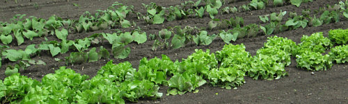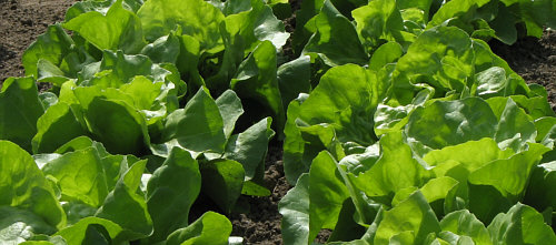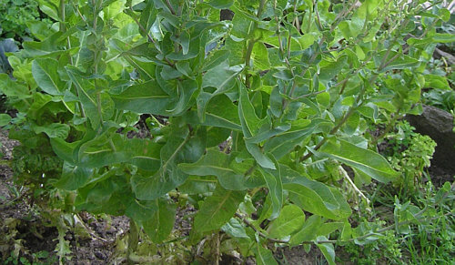 Hildegard hat diesen hochgewachsenen Salat im Garten.