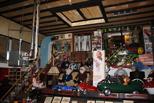 so etwas ? Warum hängt man sich neben alte Motorräder und Kaffeekannen