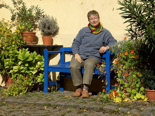 zu, immer mal wieder, die blaue Bank zu fotografieren" ... und sie hat
