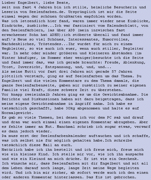 Noch mal so wunderbare Worte, diesmal per Mail mir geschickt: