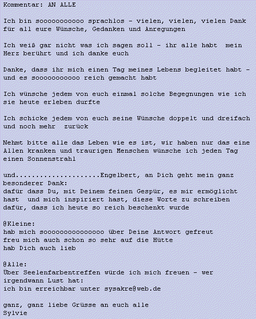 Ihr seid so wunderbar ... Eure Kommentare zu bestimmten Themen sind so
