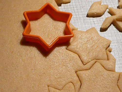 Sterne, Herzen oder andere Figuren aus dem ausgerollten Teig