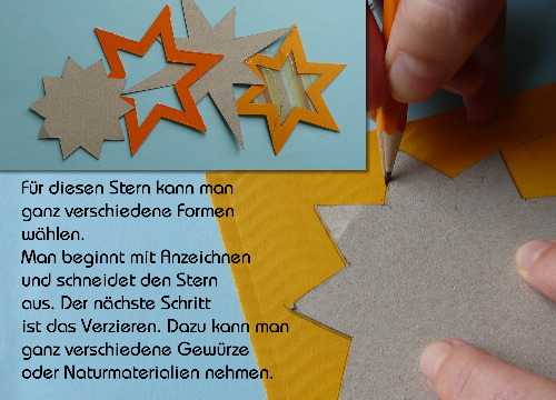 Mit Hilfe der Schablone wird die Sternenform auf die Wellpappe