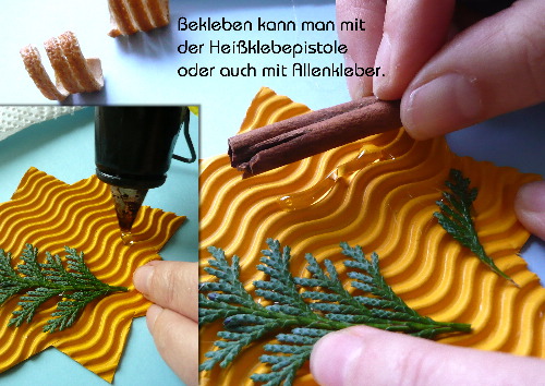 Danach werden die Gewürze oder anderes Beiwerk aufgeklebt.