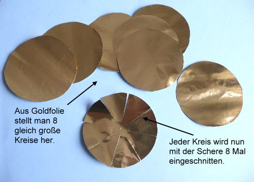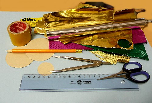 Gebraucht wird Goldfolie, Schere, ein gut gespitzter Bleistift, Zirkel,