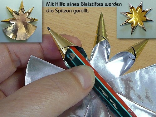 Man verfährt nun mit jeder Zacke so, bis alle acht Spitzen fertig sind.