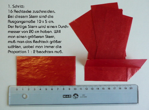 Man braucht 16 Rechtecke, alle gleich groß (ca. 5 x 10 cm).