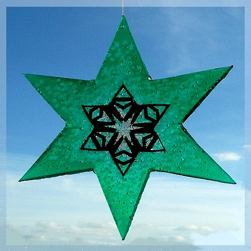 Bei dem grünen Stern habe ich in die Mitte einen kleinen Faltstern aus