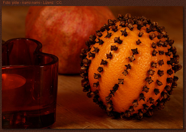 ... eine Orange mit Nelken spickt.