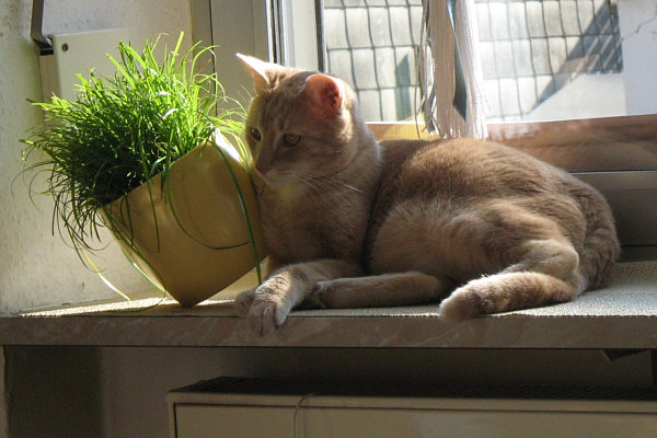 als ich, Mogli, mich damals so nett an den Topf mit Katzengras angelehnt